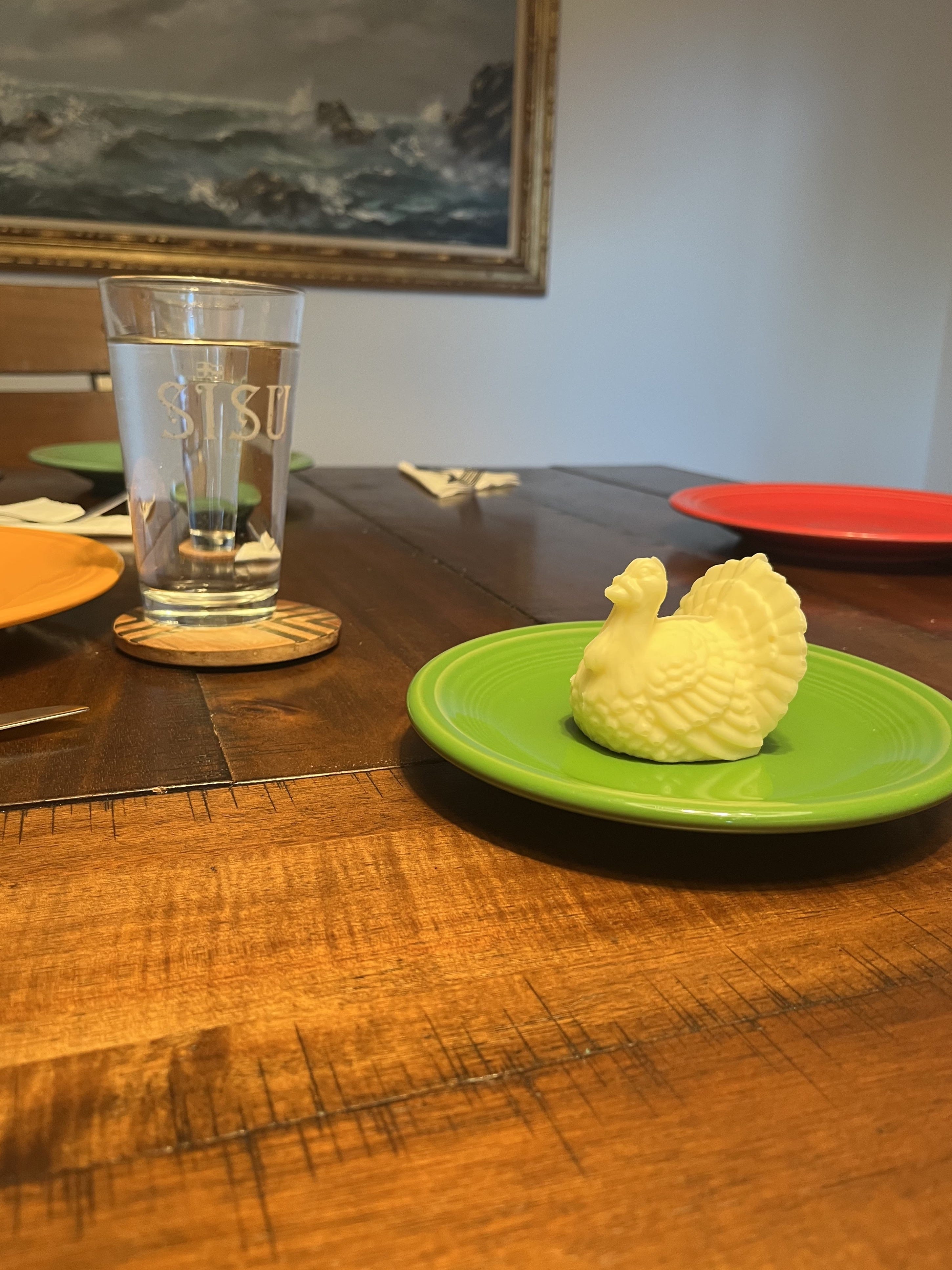 A picture of butter in the shape of a turkey that I’d bought a few weeks before in anticipation for this day.